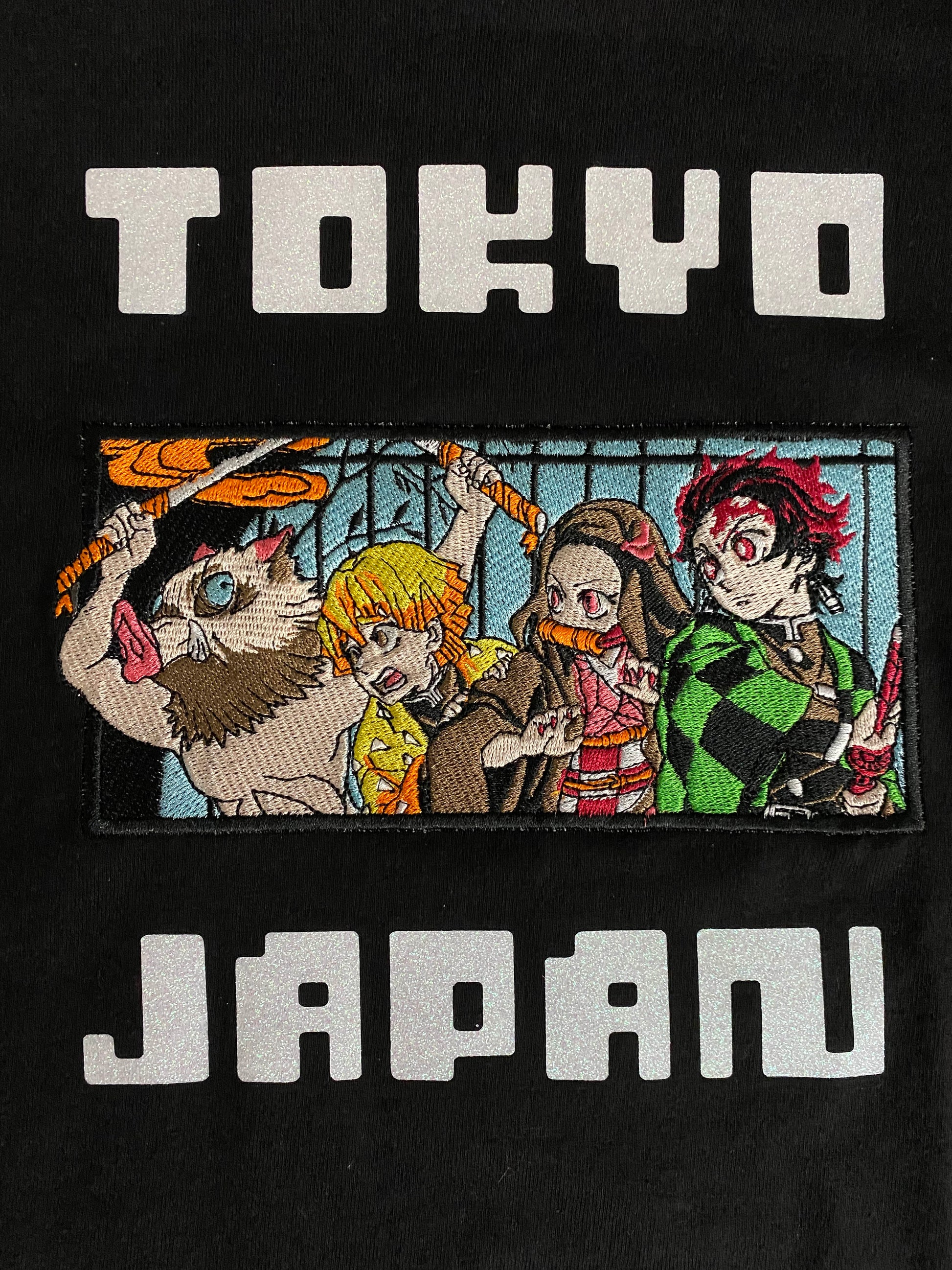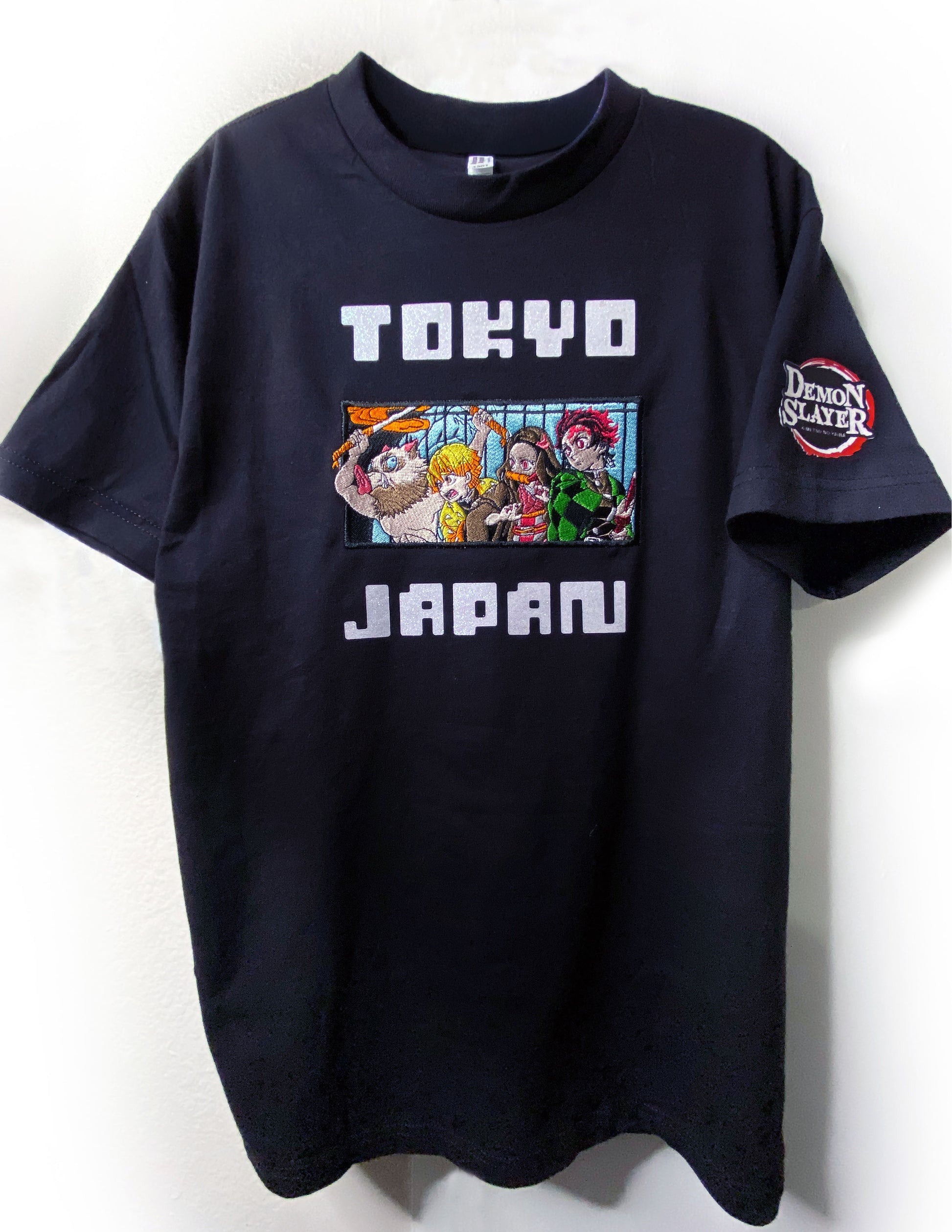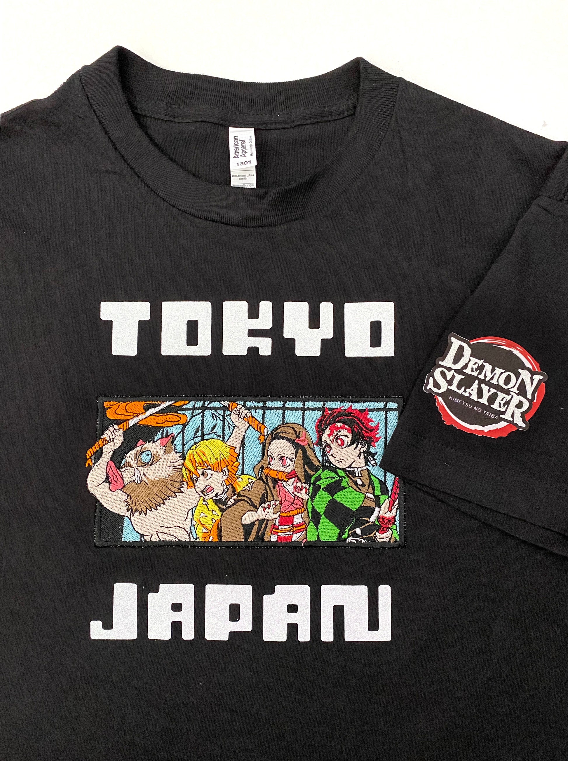 This unique t-shirt features a striking Tokyo Japan design and a Demon Slayer logo embroidered on the sleeve. It's a perfect blend of anime culture and fashion. The black color adds a sleek touch to your wardrobe. Ideal for anime enthusiasts, it showcases your love for the series.