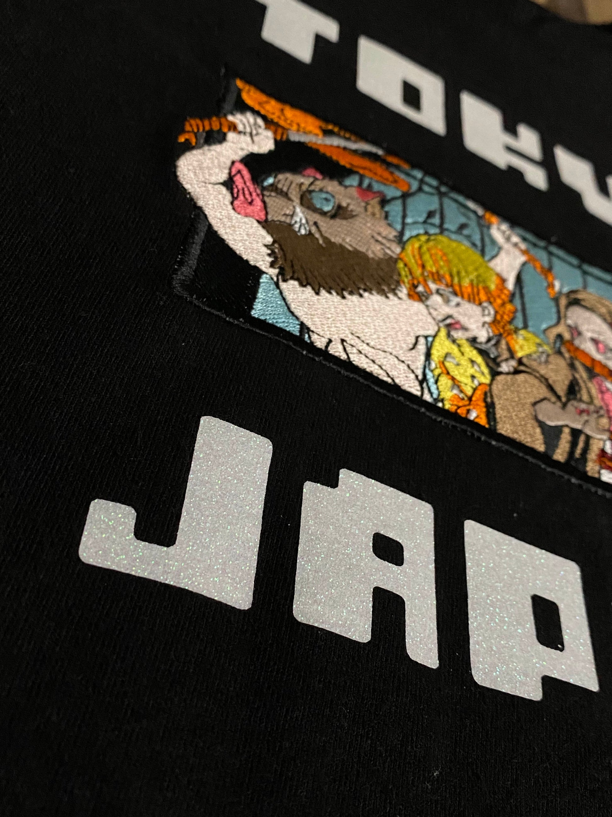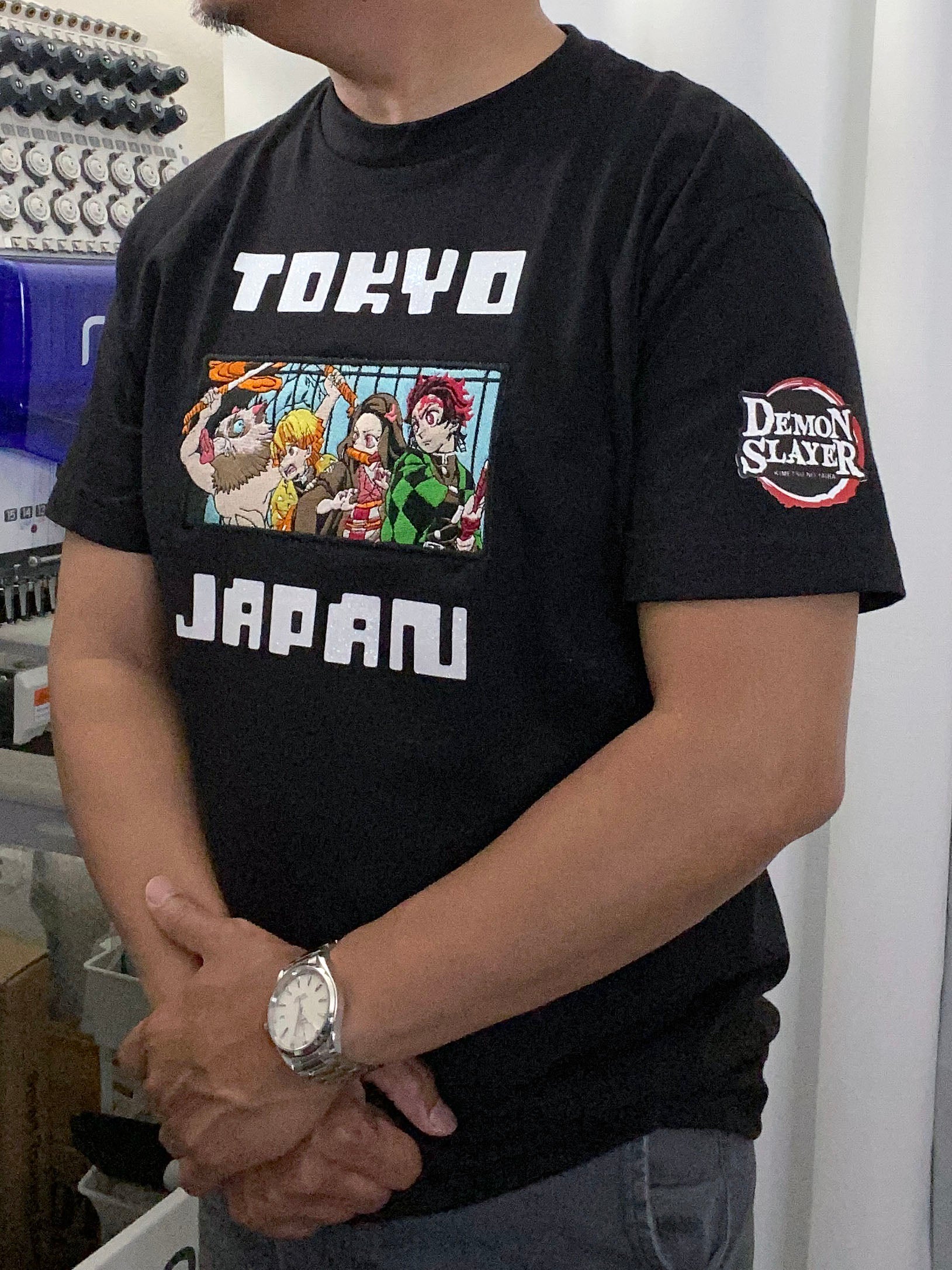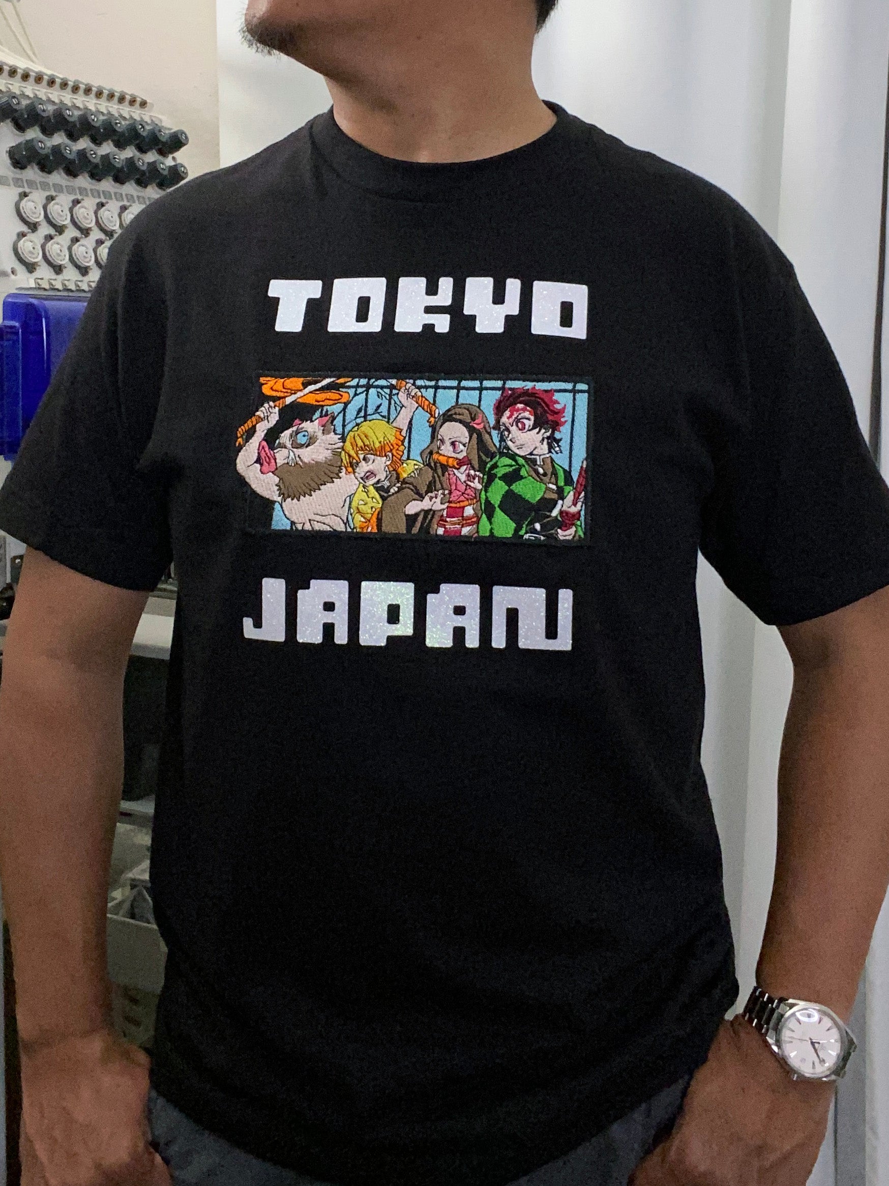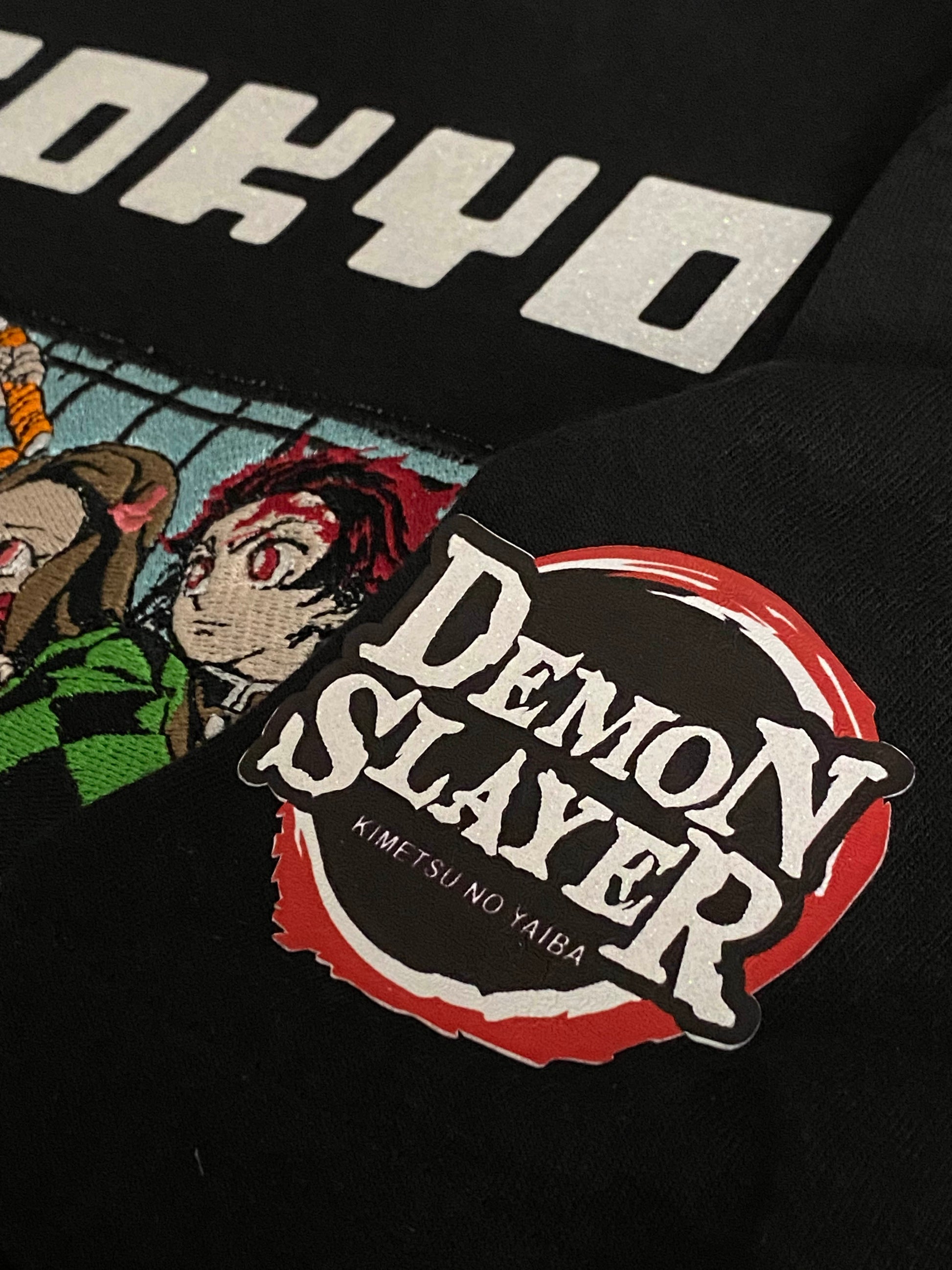 This unique t-shirt features a striking Tokyo Japan design and a Demon Slayer logo embroidered on the sleeve. It's a perfect blend of anime culture and fashion. The black color adds a sleek touch to your wardrobe. Ideal for anime enthusiasts, it showcases your love for the series.